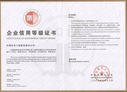 公司在學習實踐科學發展觀活動中,切實加強信用管理,嚴格履行合同,優質安全文明施工,積極推進技術進步,自覺履行社會責任,取得了可喜的成效。近日,經中國建筑業協會評定,公司獲評首批全國建筑業AAA級信用企業。