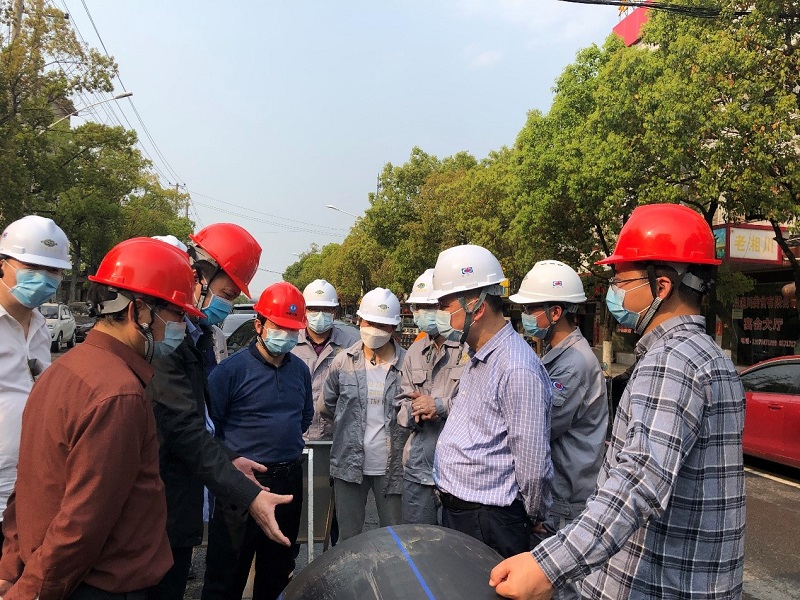 周鴻一行首先在廠區(qū)進(jìn)行了檢查,詳細(xì)了解目前施工進(jìn)展、防疫防控和現(xiàn)場各項(xiàng)安全生產(chǎn)措施落實(shí)情況,隨后到各路段現(xiàn)場檢查了管網(wǎng)施工情況。