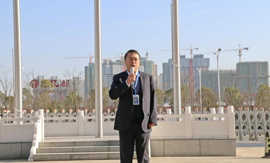隨后,公司黨委書(shū)記胡流芳在國(guó)旗下發(fā)表新年講話。他首先代表公司向全體員工及家人拜年,致以新春的美好祝愿。他指出,新年舉行升國(guó)旗儀式,目的是為了激發(fā)大家的昂揚(yáng)斗志,以飽滿的熱情、干事的激情、成事的豪情,盡快投入工作當(dāng)中,推動(dòng)公司高質(zhì)量發(fā)展,為公司“十四五”開(kāi)好局、起好步,助推公司早日實(shí)現(xiàn)“百億化建”目標(biāo)。他強(qiáng)調(diào),2021年是“十四五”開(kāi)局之年,也是中國(guó)共產(chǎn)黨成立100周年。公司全體職工要發(fā)揮聰明才智,用務(wù)實(shí)的作風(fēng)和不折不撓的精神,團(tuán)結(jié)一心,鼓足干勁,奮力拼搏,以“起步即沖刺、開(kāi)局即決戰(zhàn)”的姿態(tài),只爭(zhēng)朝夕、全力以赴,以優(yōu)異成績(jī)獻(xiàn)禮中國(guó)共產(chǎn)黨百年華誕!