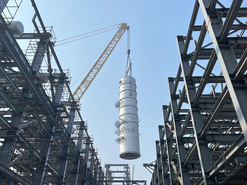 與此同時(shí),由東北公司承建的大連恒力石化項(xiàng)目苯酚丙酮裝置異丙苯單元烷基化反應(yīng)器順利實(shí)施吊裝,如期完成施工關(guān)鍵節(jié)點(diǎn)。