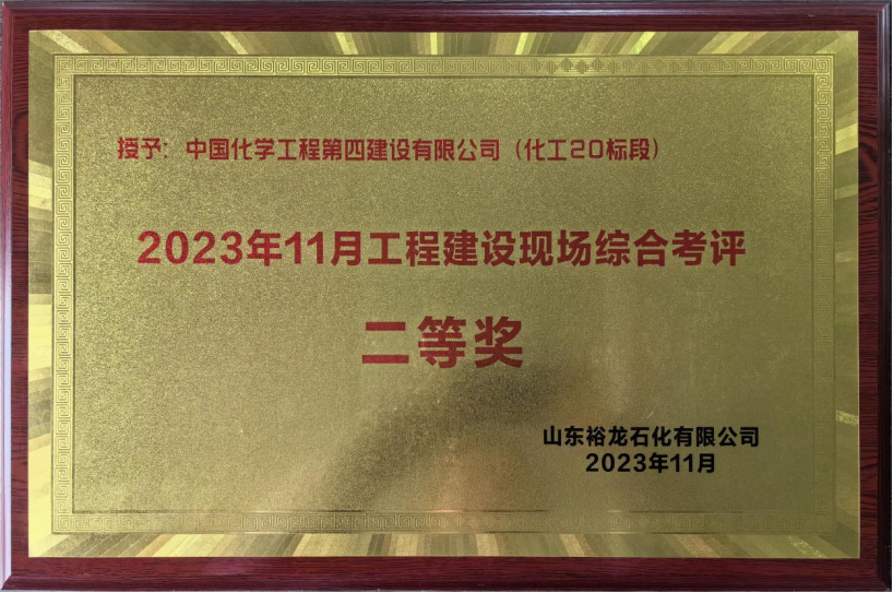 山東裕龍項目化工20標段現場綜合考評獲“二等獎”