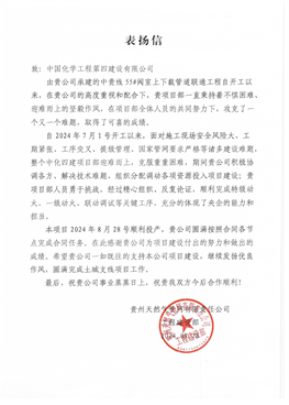 近日,西部公司收到貴州天然氣管網(wǎng)有限責(zé)任公司發(fā)來的表揚信,對項目部按照合同各節(jié)點目標圓滿完成任務(wù)給予高度贊揚。
