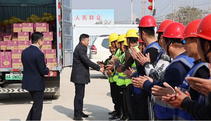 在檢查中,張日暉與施工人員親切交談,詢問他們的工作、生活情況,感謝他們為項目建設付出的辛勤努力和作出的突出貢獻,并送上慰問物資,向他們致以親切慰問和新年祝福。他指出,各級組織要真心實意關心關愛項目職工,切實為他們排憂解難,多辦實事、多辦好事,確保堅守一線的建設者也能感受到節日氣息和家的溫暖。