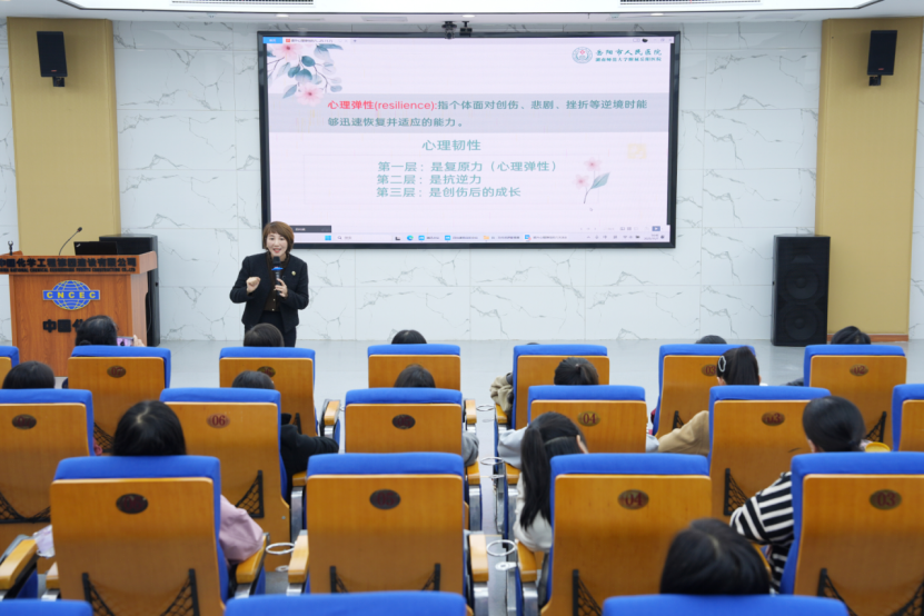 健康講座環節,岳陽市人民醫院敖小紅、劉陽春兩位講師接力授課。敖小紅以《職工心理評估的意義》為題,講解心理評估對職場人群的重要性,為女職工心理調節與干預提供科學指引;劉陽春圍繞《提升心理彈性的六大法寶》,傳授情緒調節、壓力疏導實用方法,并現場互動答疑。現場學習氛圍濃厚,參與女職工紛紛表示,講座內容貼合職場女性實際需求,干貨滿滿,真正學到了守護身心健康的“硬本領”。