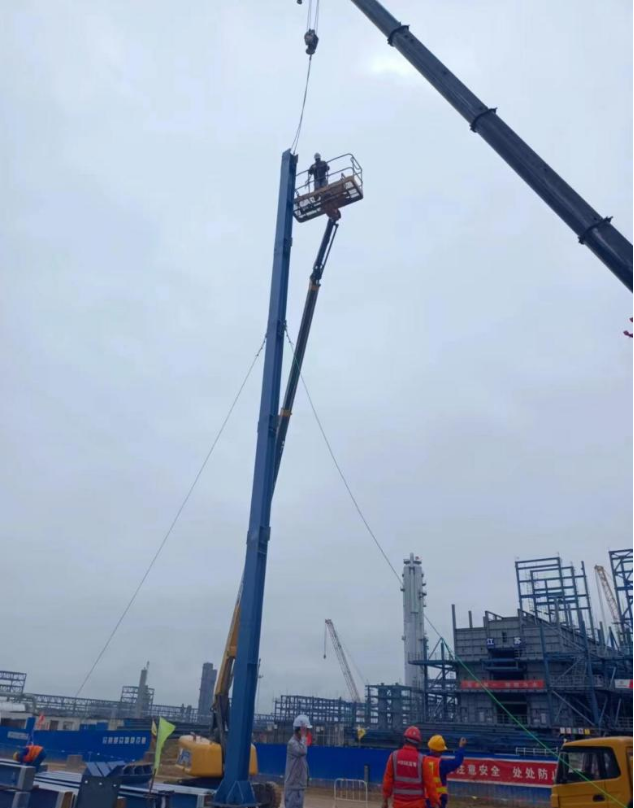 此次吊裝難度大,最大塔高度49米,穿衣戴帽后最大重量195噸。為組織好這兩臺塔器的吊裝工作,項目施工人員對設(shè)備吊裝過程的每一步“精打細算”,吊裝嚴格按照方案執(zhí)行并進行技術(shù)交底。吊裝期間,項目主要管理人員堅守現(xiàn)場,對設(shè)備吊裝情況實時監(jiān)督,直至塔器順利安裝就位。此次吊裝,獲得監(jiān)理業(yè)主一致認可,為后續(xù)施工打下了堅實基礎(chǔ)。
