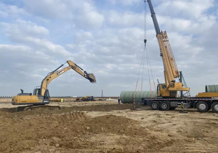 此次開工的公用工程項目主要包括13、14標段的給排水及消防管網(wǎng)工程。由于工程地管口徑大,其中海水管、雨水管、循環(huán)水管最大直徑分別為DN3200、DN4200、DN2600,多條管線并排放置,基坑開挖深度超過9米,總長度超過26千米,工程量大,標準要求高。同時,又因施工區(qū)域為填海造陸,降水排水工作任務(wù)重,施工難度增加。