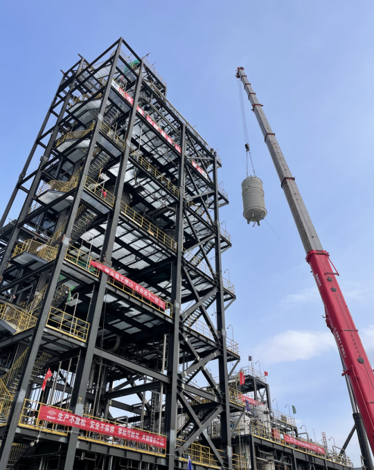 西部公司西部新材料項目完成4臺聚合反應釜吊裝